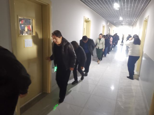 应急疏散演练。模拟某学生公寓楼内发生火情,警报响起后,公寓老师迅速进入角色,按照应急预案分工协作。低姿弯腰,沿着预定的疏散路线,快速有序地撤离至安全集合点。整个过程组织严密,反应迅速,达到了演练目的。